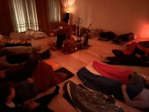 Omdat we voor het concert een vrije donatie vragen, mag je je eigen mat, kussen en deken meebrengen, of iets anders dat voor jou comfortabel is om op de grond te liggen. In onze studio hebben we een paar matten en dekens beschikbaar.